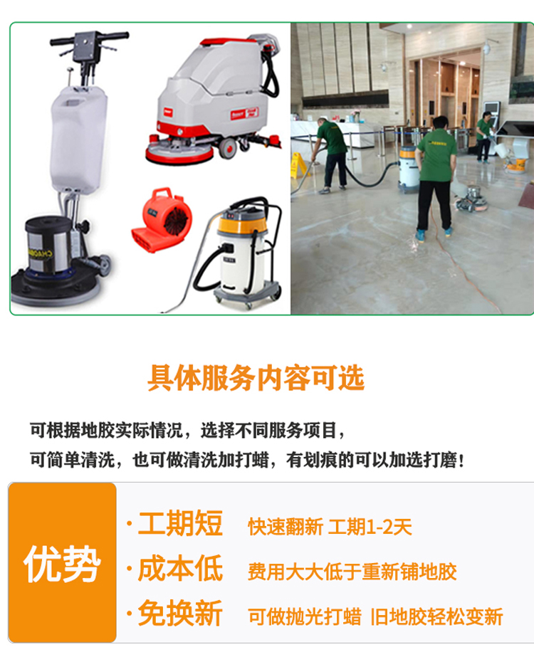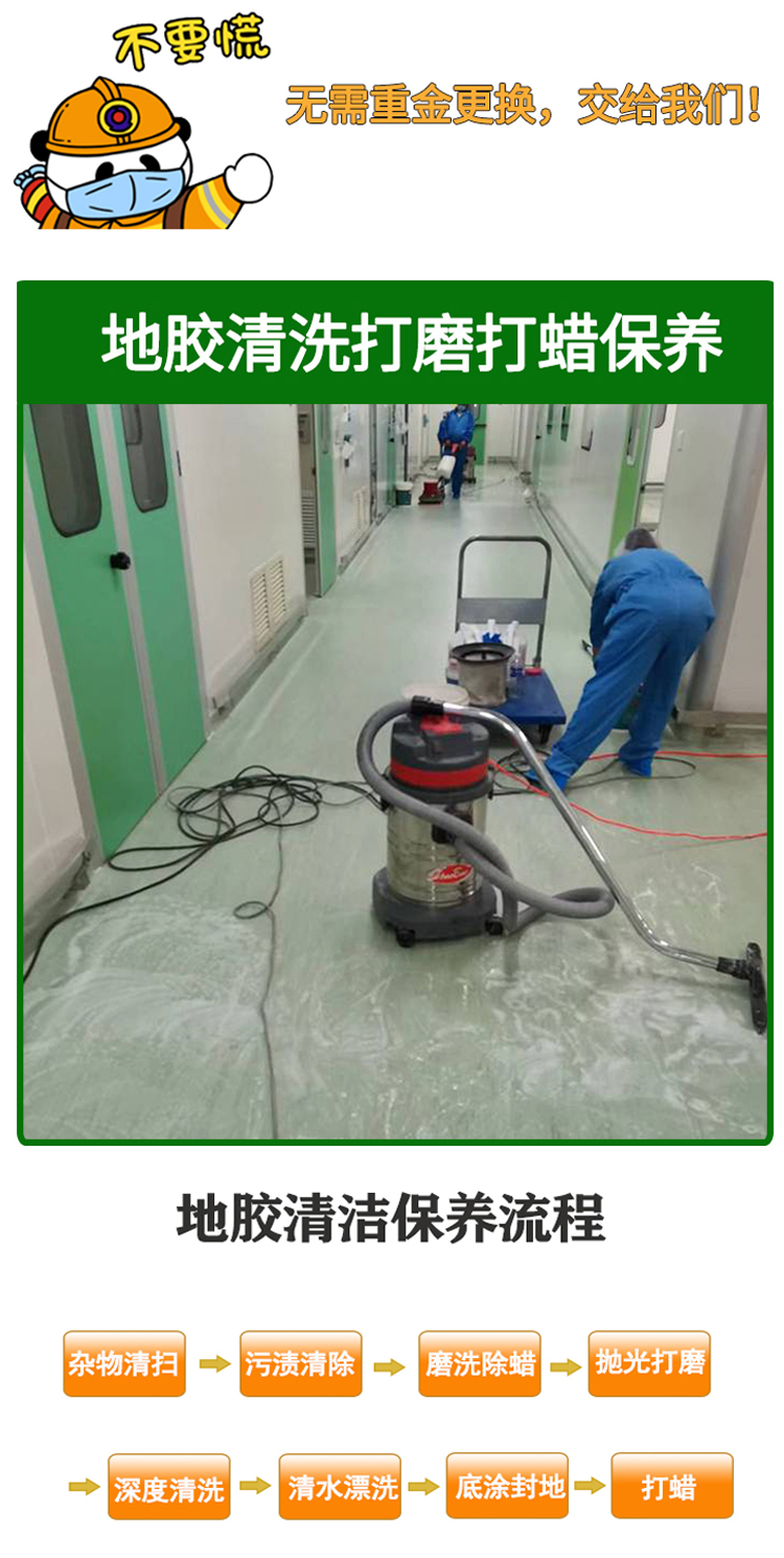 介紹:醫(yī)院地面翻新改造,PVC地膠保養(yǎng)打蠟,局部維修更換等等地面問題解決方案推薦,歡迎來電咨詢。